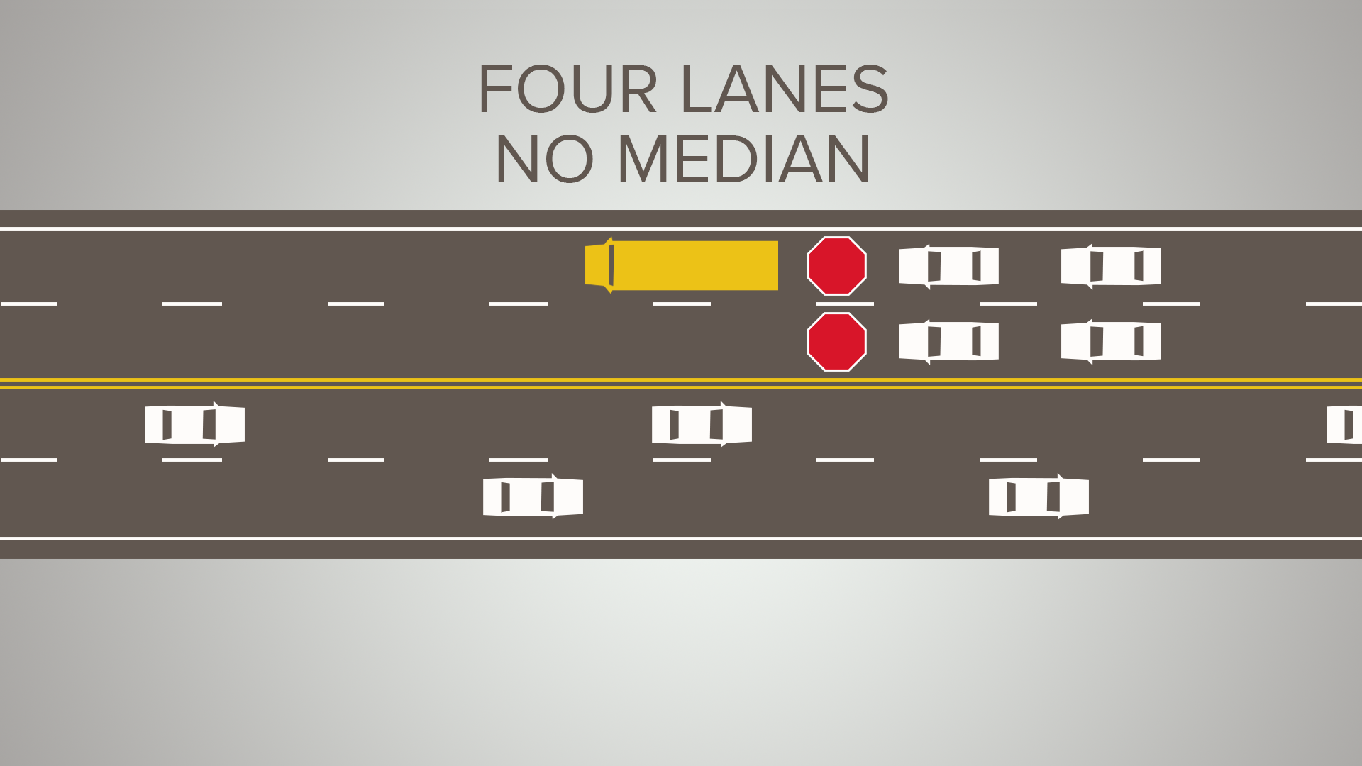 On a two-lane road with a center-turn lane, traffic MUST STOP on both sides of the road.