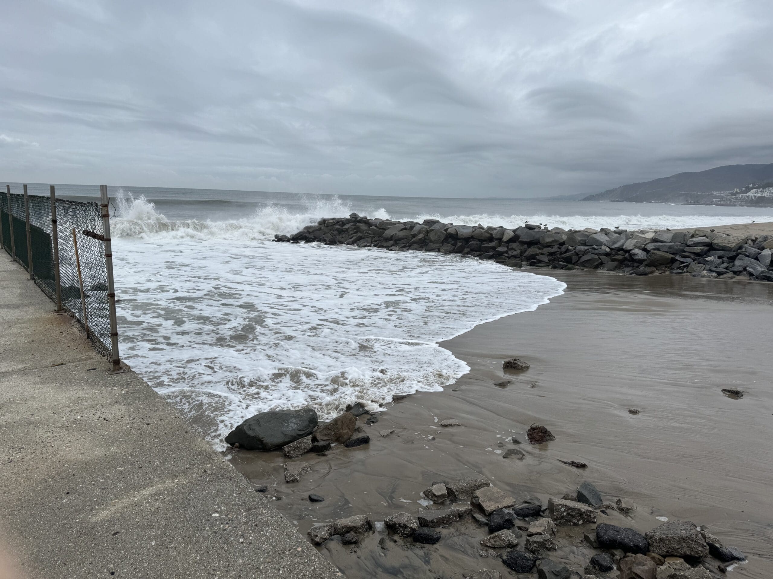 Waves were crashing high on the beach. One Beach and Harbor official at Will Rogers Beach at the base of Temescal said, “The big waves just keep coming.”