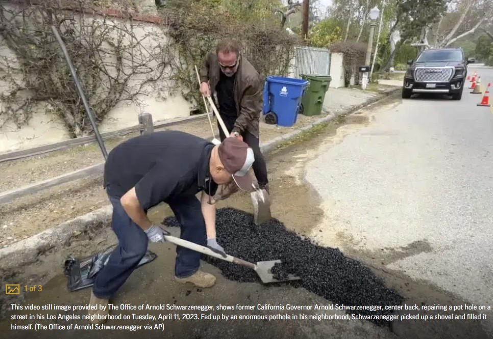 Former Pacific Palisades resident and California Governor Arnold Schwarzenegger has expanded his resume to include street repair.