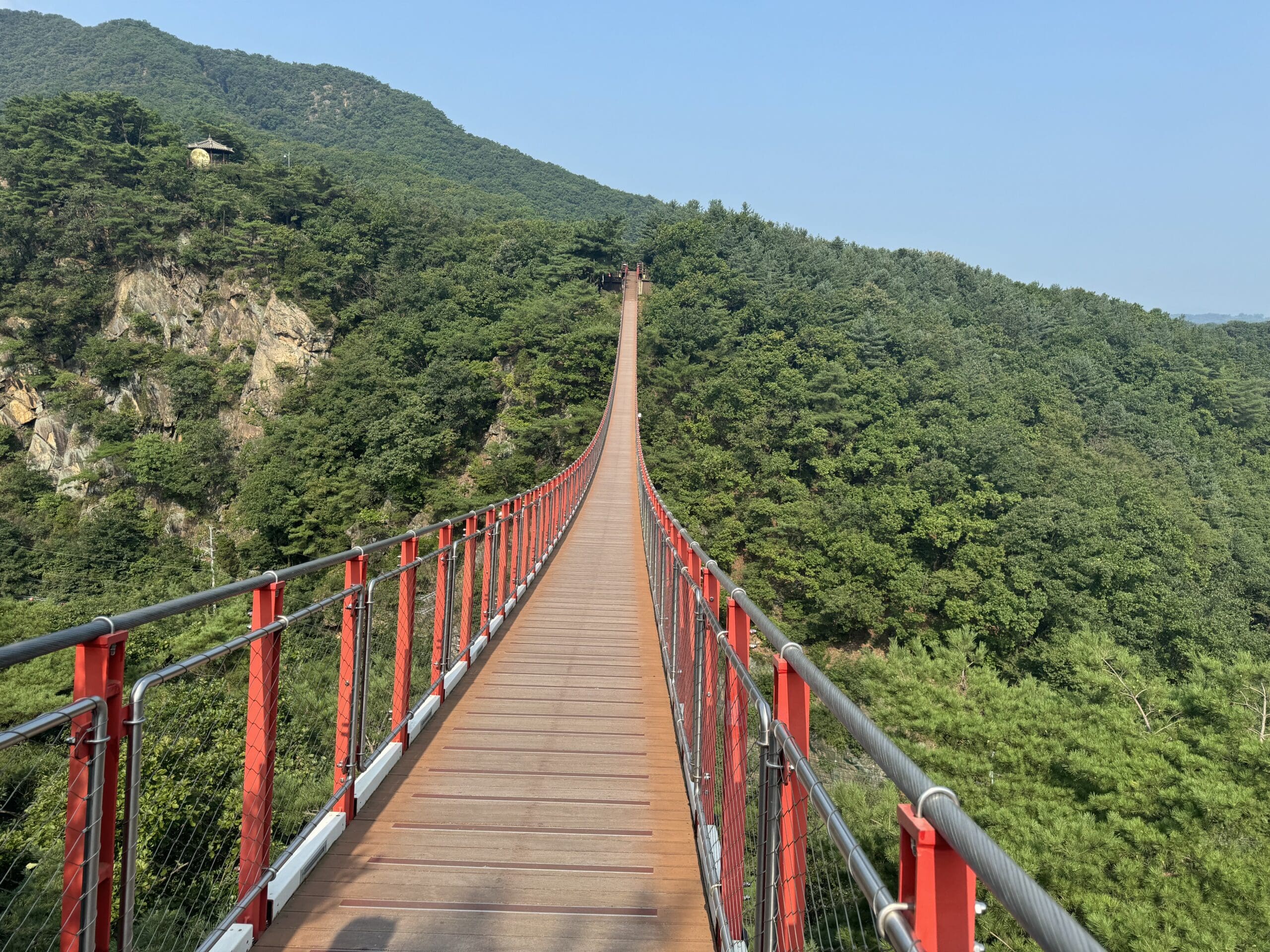 At 17, Chung Ju-yung, who later developed Hyundai, left North Korea with 70 won, he took from his father, after a family cow had been sold. In 1988, almost 66 years later, Ju-yung returned to North Korea with a long line of trucks carrying cattle, to pay back his late father a thousand times for his wrongdoing in his youth. (There’s a life-sized plastic cow below the beginning of the bridge.)