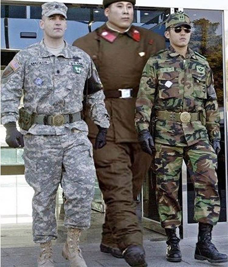 The guide showed us a photo of three soldiers, which had greatly displeased the North Korean leader. Because of food shortages in North Korea and inadequate nutrition, the men tend to be shorter than their U.S. and South Korean counterparts.