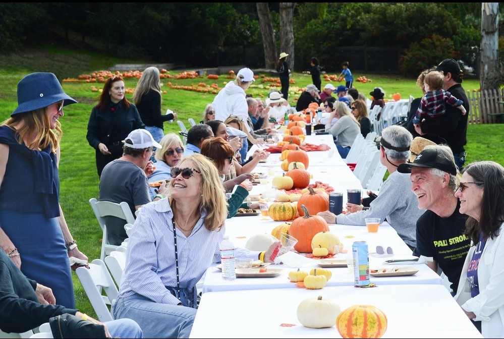 The tables were festively decorated with colorful paper leaves and pumpkins and gourds from the YMCA Pumpkin patch. The event was free and people from the fire-ravished Pacific Palisades were invited to gather over a meal and enjoy community.
