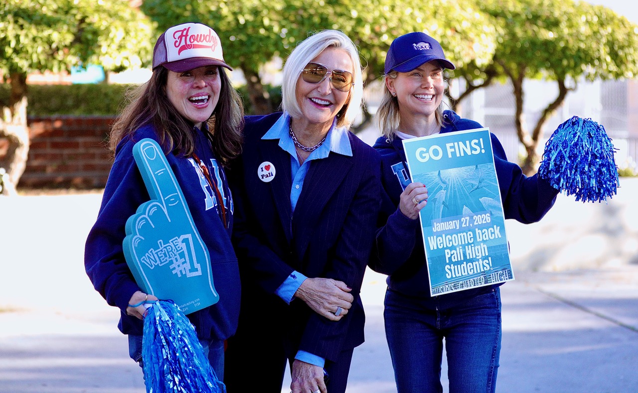 Marquez Elementary Principal Lisa Timmerman was on hand with several teachers and a big sign welcoming students back. “We wanted to support Pali,” Timmerman said. “We’re better together.