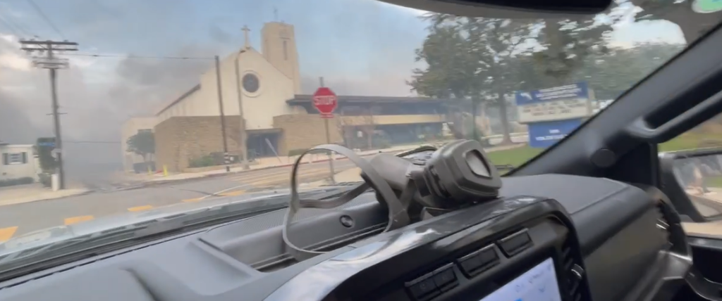 Residents reported that numerous firetrucks were parked at Paul Revere Middle School and in the Will Rogers State Beach parking lot while the fire raged on November 7 and 8.