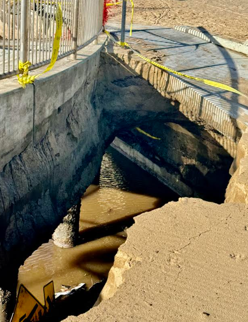 Part of the cement bike path, which was part of the Marvin Braude Beach Trail Gap Closure project collapsed in February 2024 during heavy rains. The other half collapsed last night, February 13.