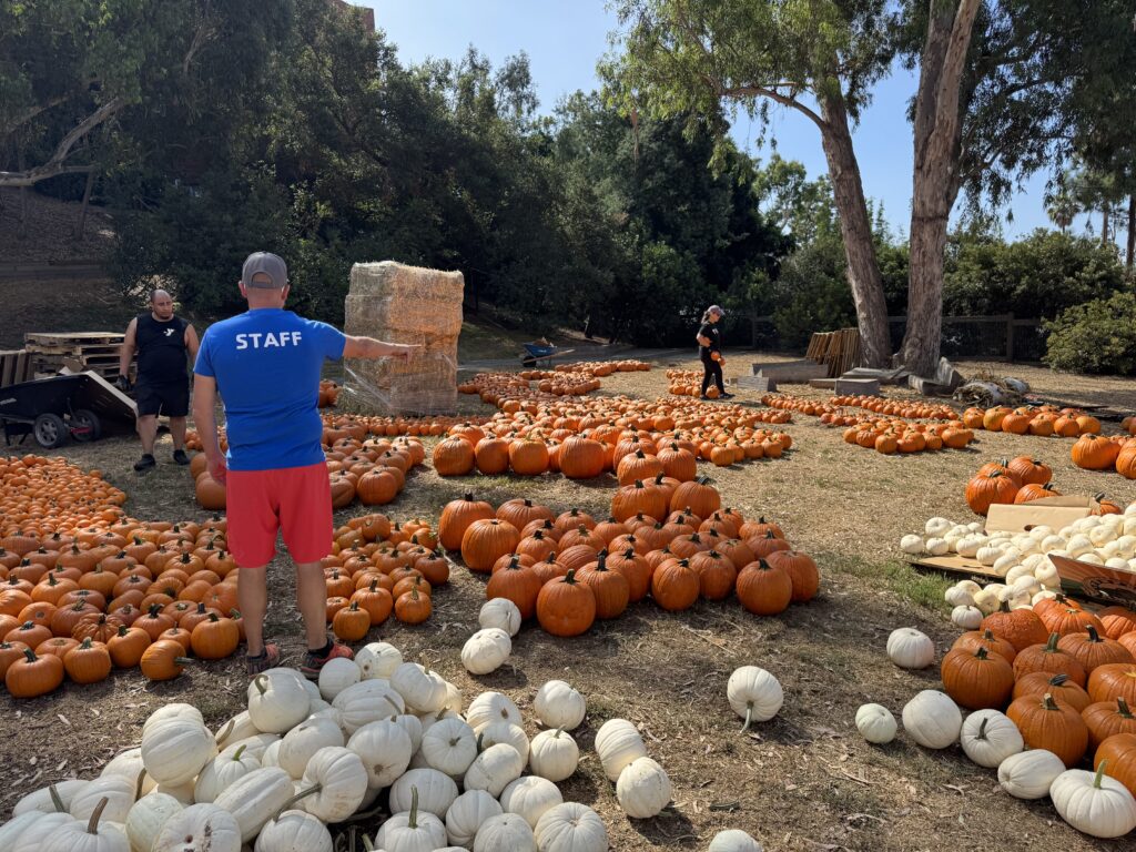Volunteers unloaded boxes and boxes of pumpkns today, October 1.