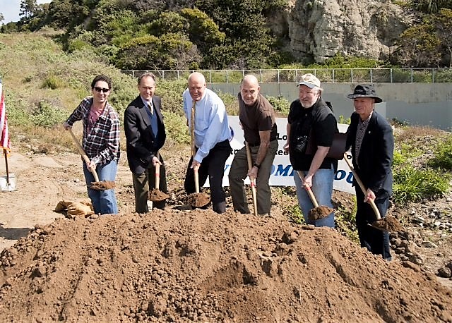 This was a 2011 Potrero Groundbreaking, those assisting were (left to right) Rob Weber, Norman Kulla, Councilman Bill Rosendahl, Stuart Muller, David Card and George Wolfberg.