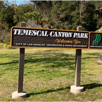 Temescal Canyon Park stretches from below Bowdoin to Pacific Coast Highway. There are no fences around this park, there are no gates. There are several picnic tables, a playground and bathrooms. This park is bisected by Temescal Canyon Road.