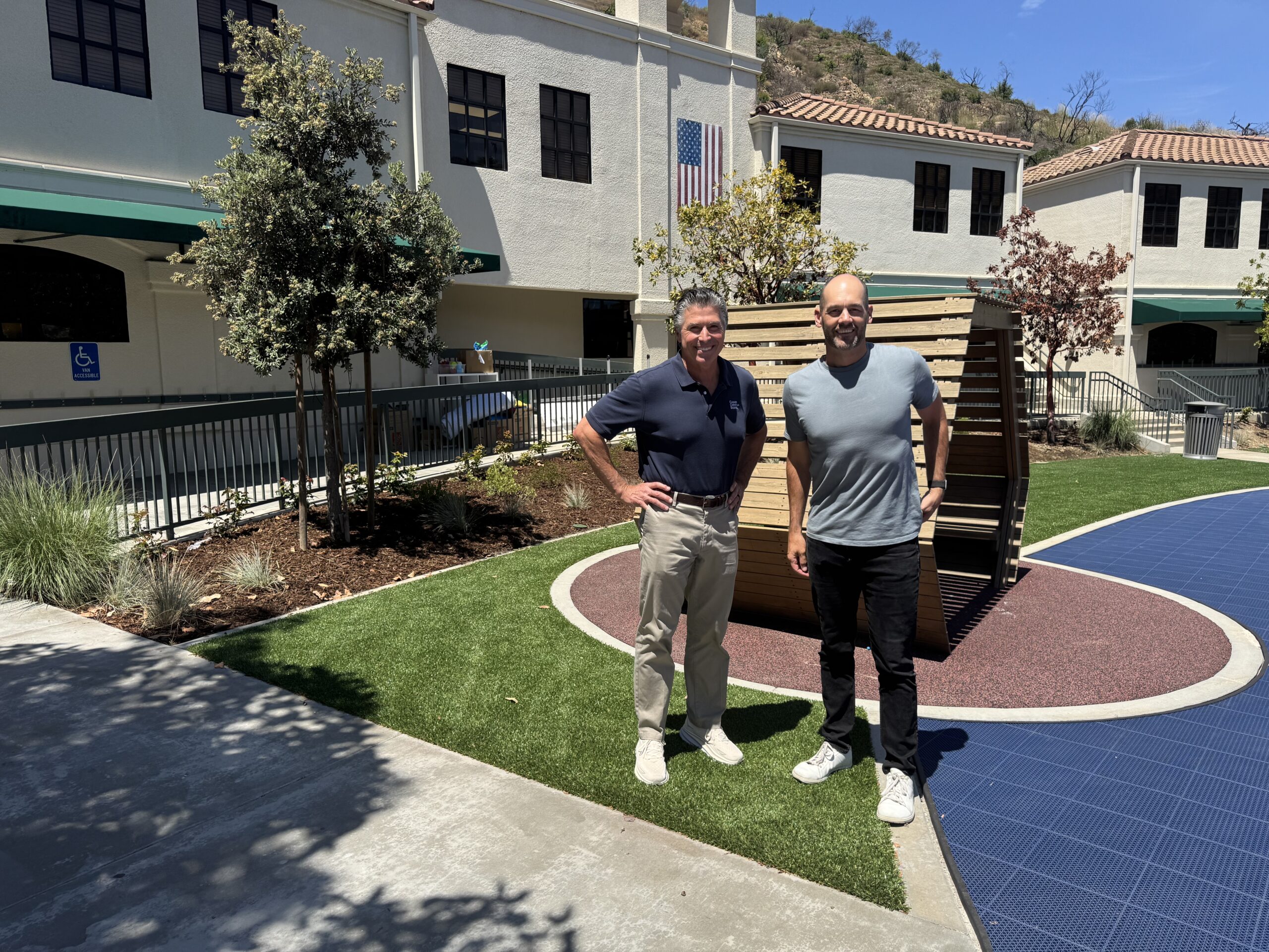 Calvary Head of School Vince Downey (left) and Pastor Justin Anderson stand on the playground that was redone in time for this school year.