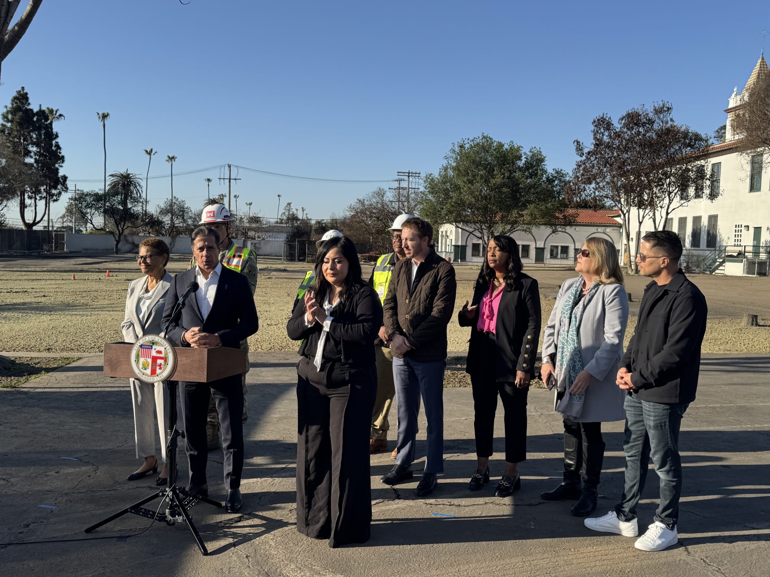 Local news channels covered the press conference held at Palisades Elementary that included L.A. Mayor Karen Bass, LAUSD Superintendent Albert Carvalho, ACE Colonel Brian Sawser and LAUSD Board Member Nick Melvoin.