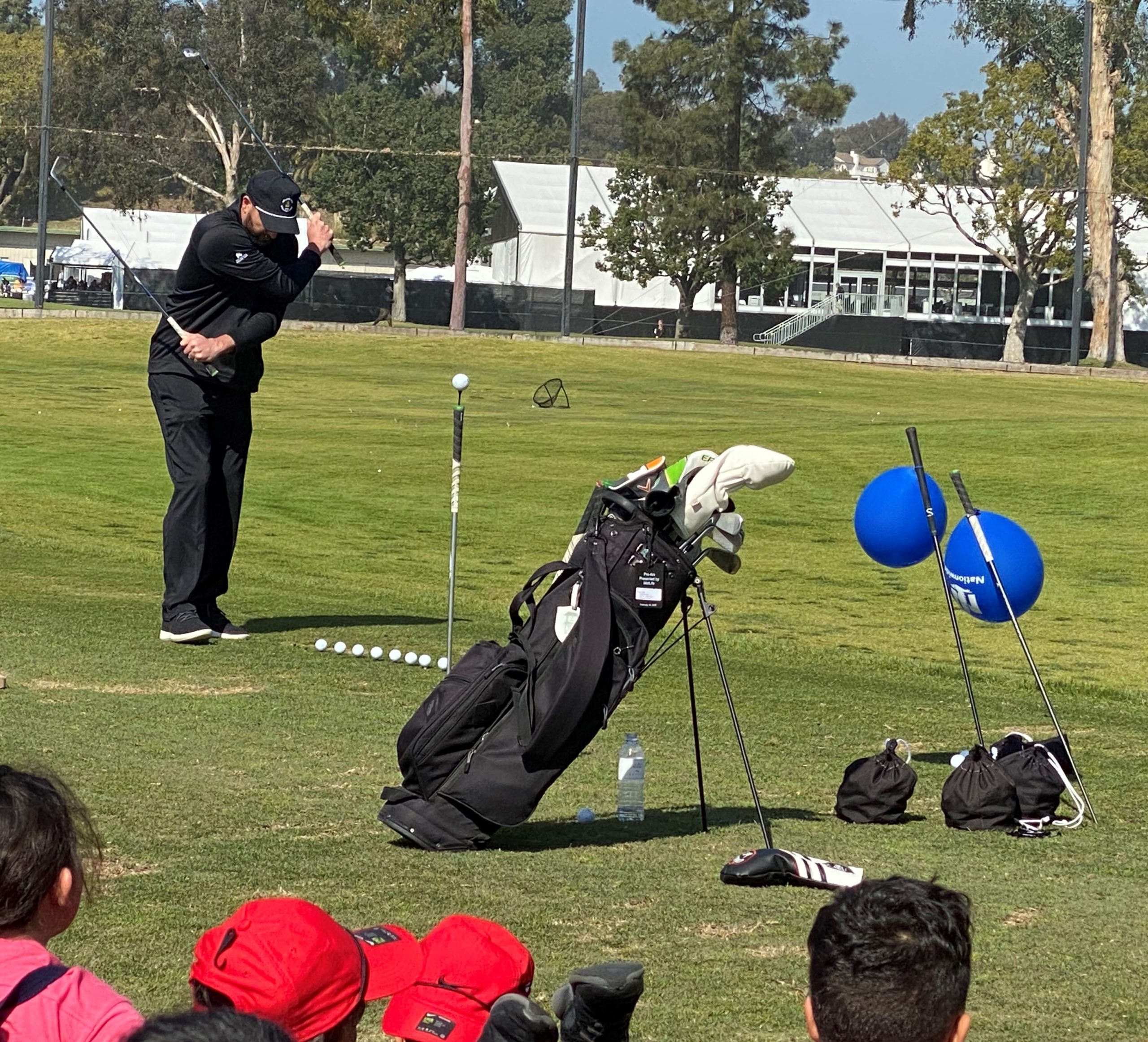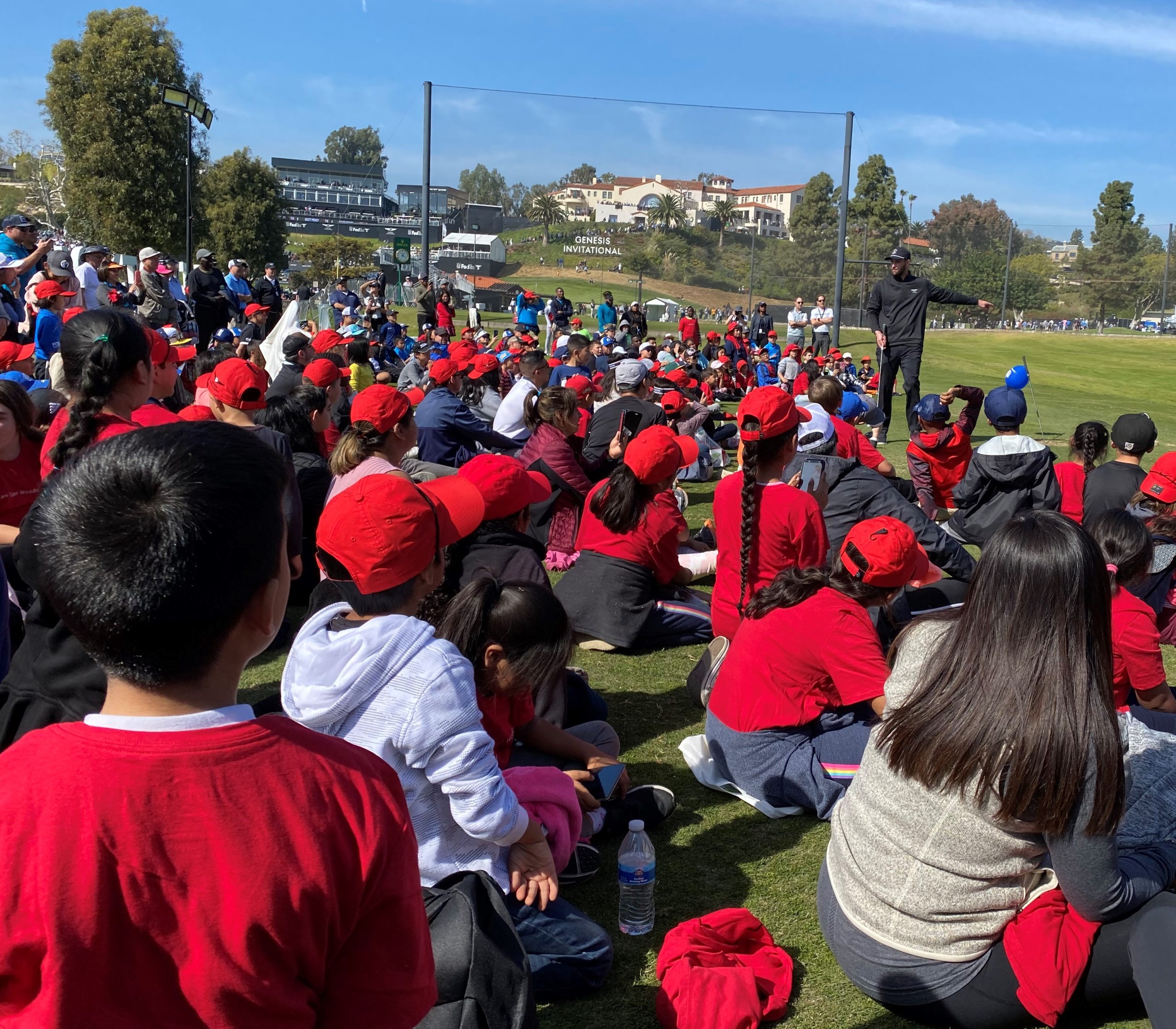 More than 650 kids experienced the Genesis golf tournament and were able to watch a trick golfer and meet a professional golfer on the Riviera driving range on Saturday.