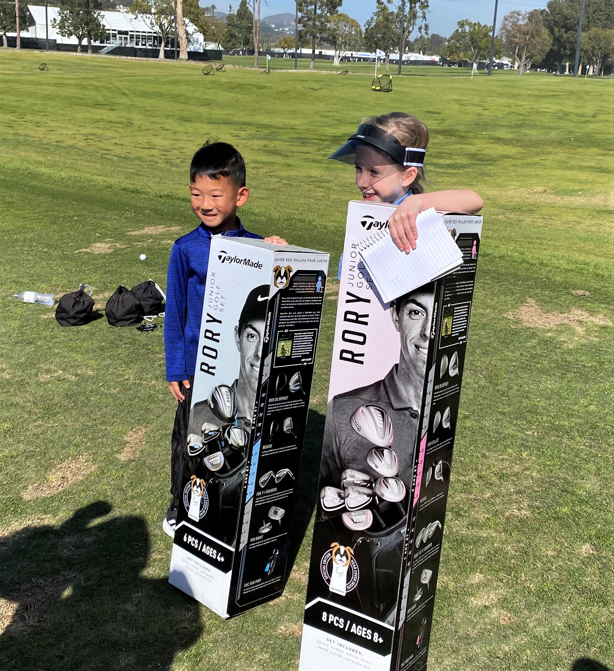 Then, two lucky kids had a pink paper in their “goodie bag” that had been randomly given out that day. They were asked to come forward and found out they had won a set of junior golf clubs.