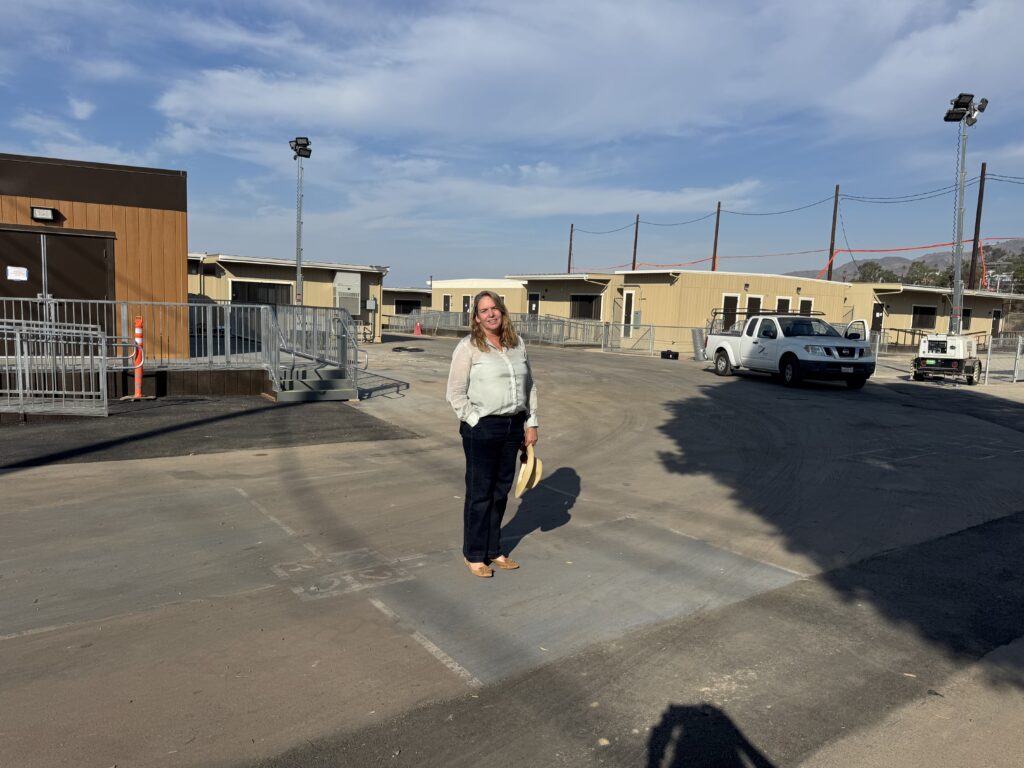 New Marquez Principal Lisa Timmerman stands in the area where students will attend school. Portable classrooms have been place on the lower play yard.