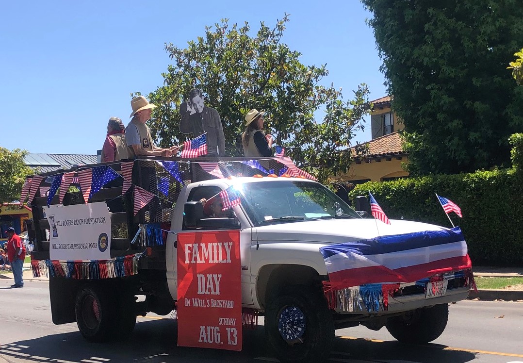 The Will Rogers “float” incorporated ropers, horses and a float complete with a paper cut out of Will Rogers.