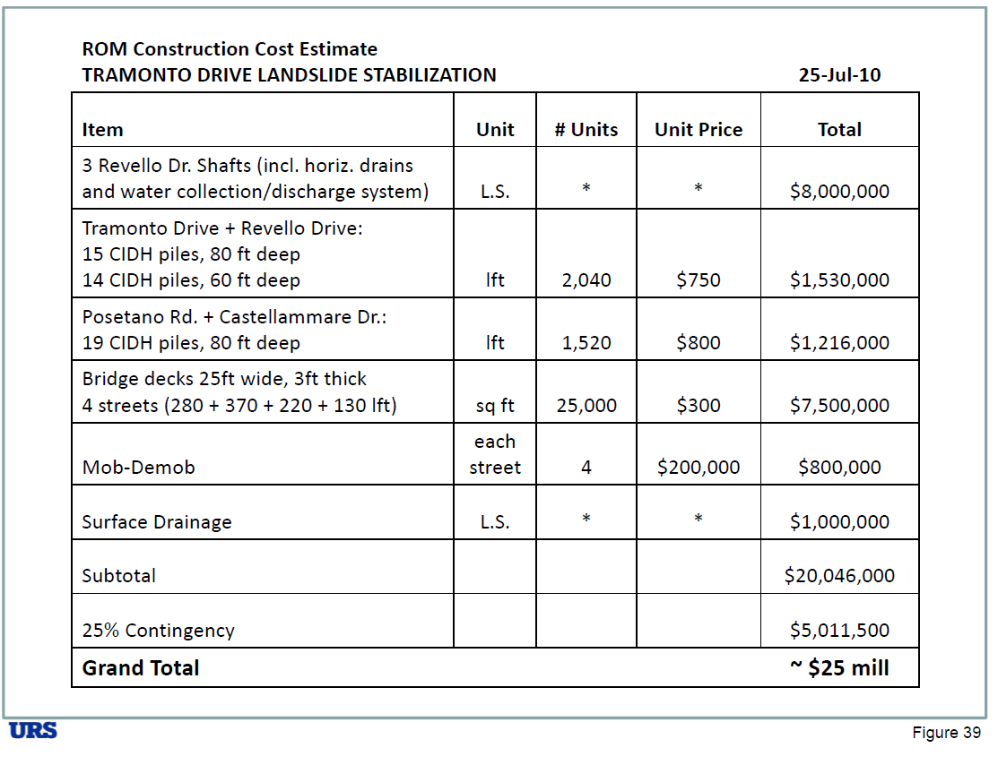 The cost to reinforce that Tramonto slide area was estimated to be about $25 million in July 2010.