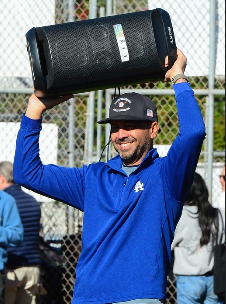 Kambiz Kamdar, co-founder of PaliBuilds, is also on the Pacific Palisades Baseball Association Board. He was setting up sound opening day.   Photo: RICH SCHMITT