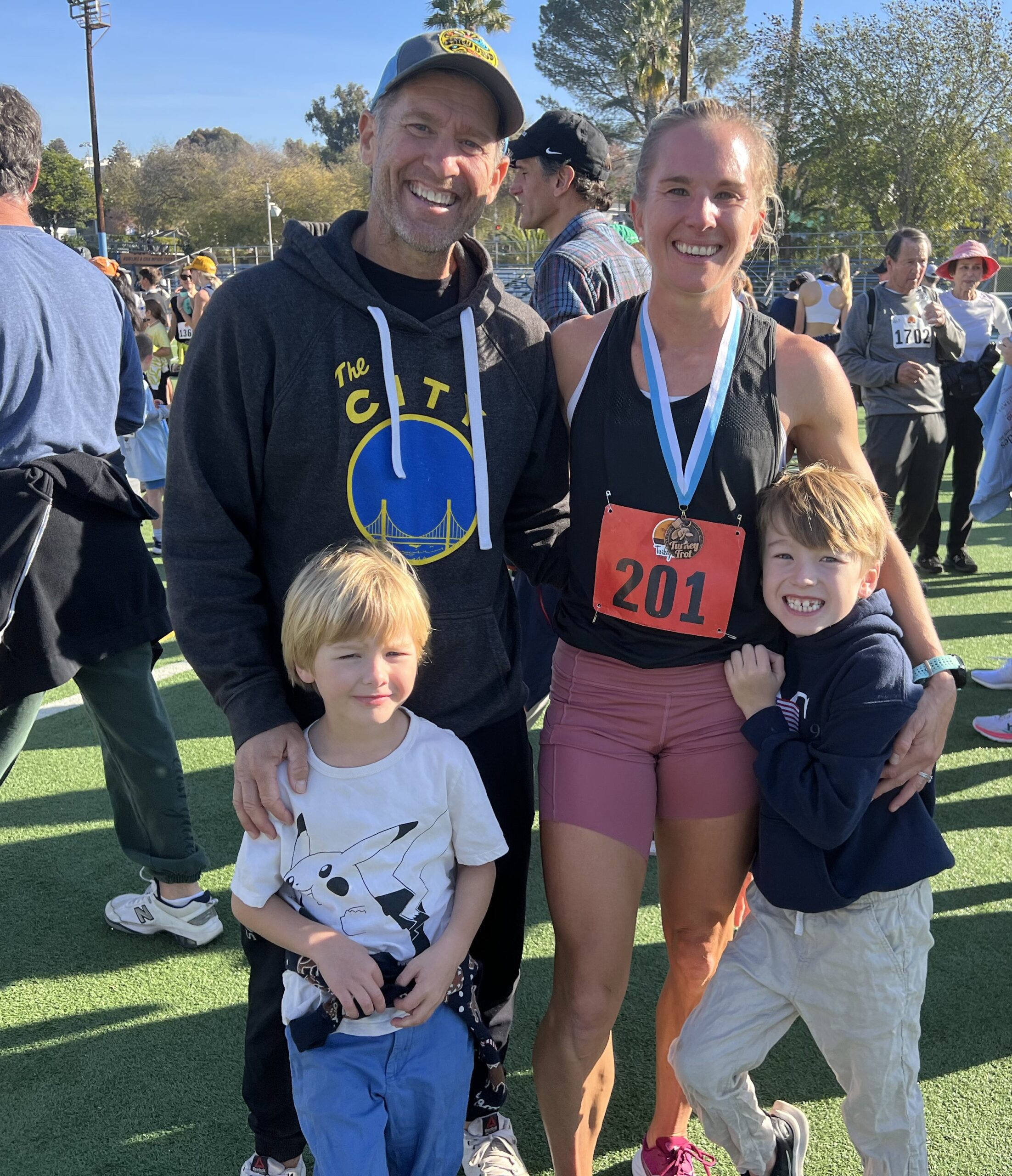 Charolette Kane, who won the 10K ,is seen with her family.