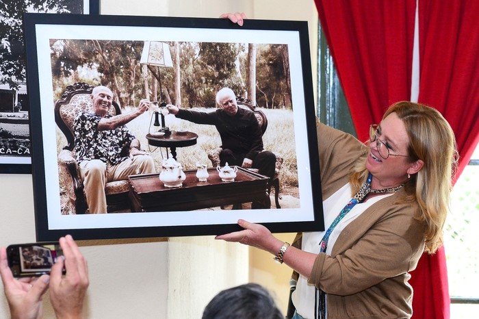 Veslemoey Zwart, who serves on the Rustic Canyon Park Advisory Board, held up a photo of her mentors George Wolfberg and Randy Young.