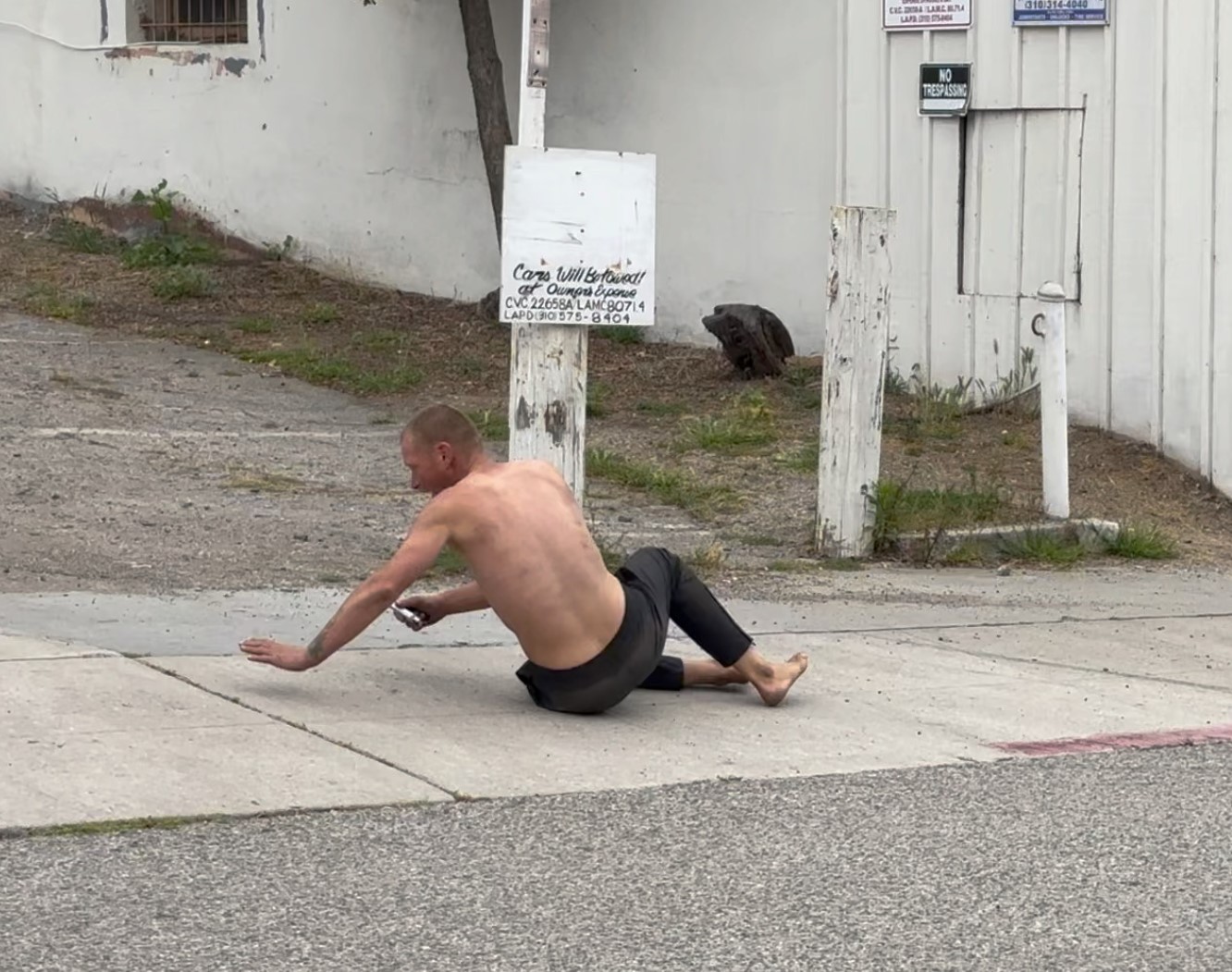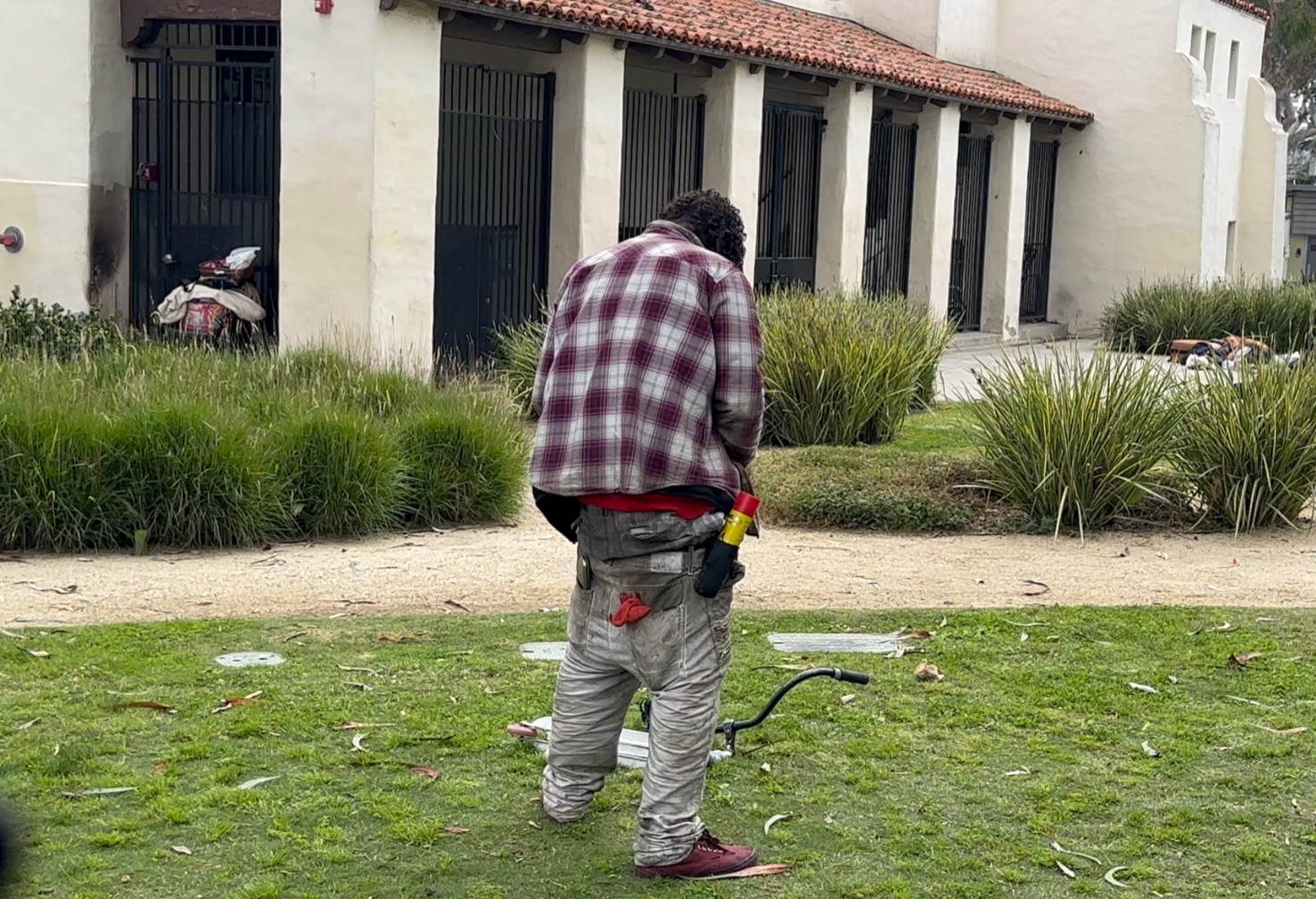 The man collapsed on the street in Tongva Park. Efforts to revive him failed and he died.                Photo: John Alle