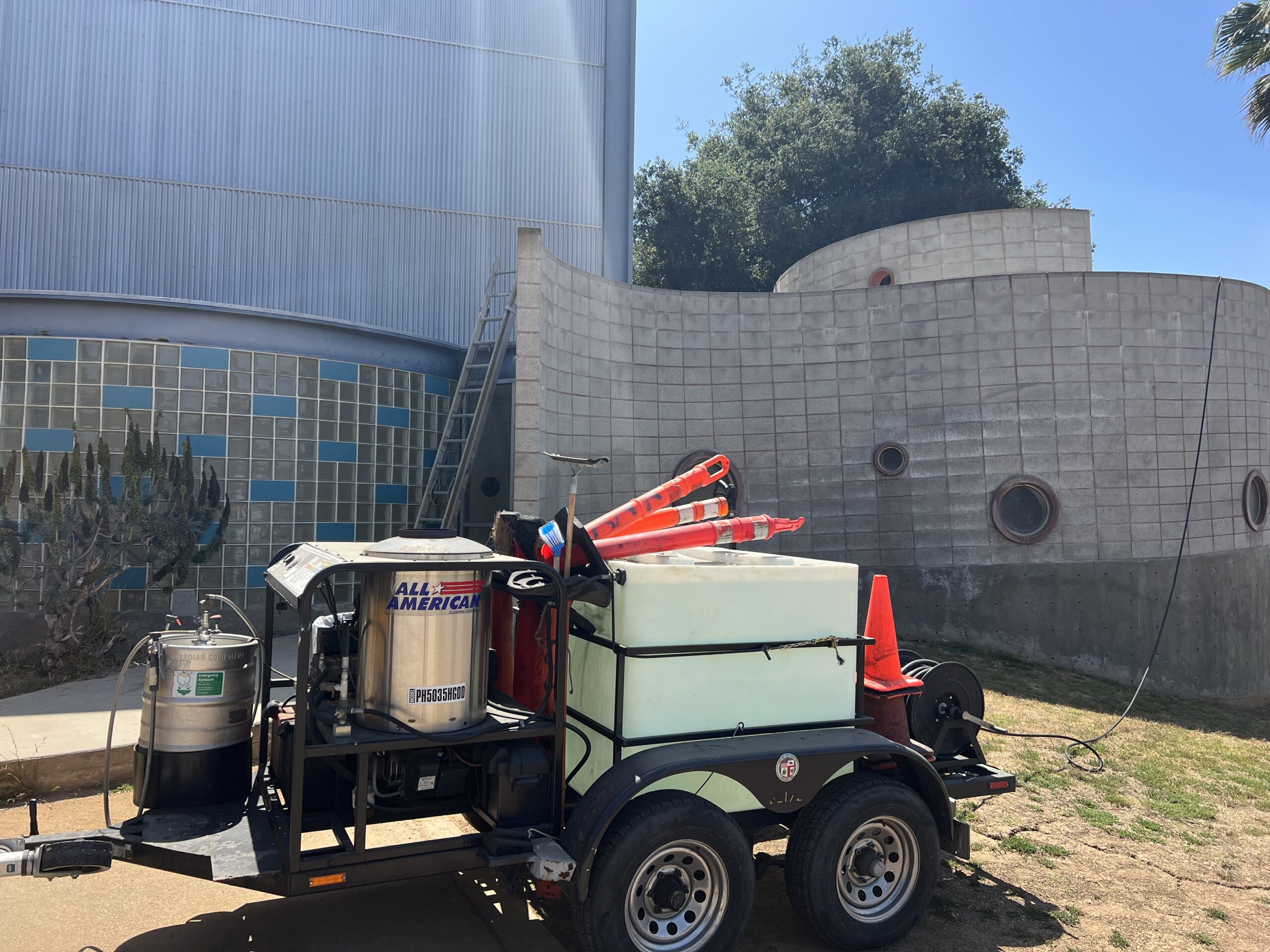 Around 11 a.m. there were Recreation and Park staff scaling a ladder to get to the second floor to paint over the offensive language.