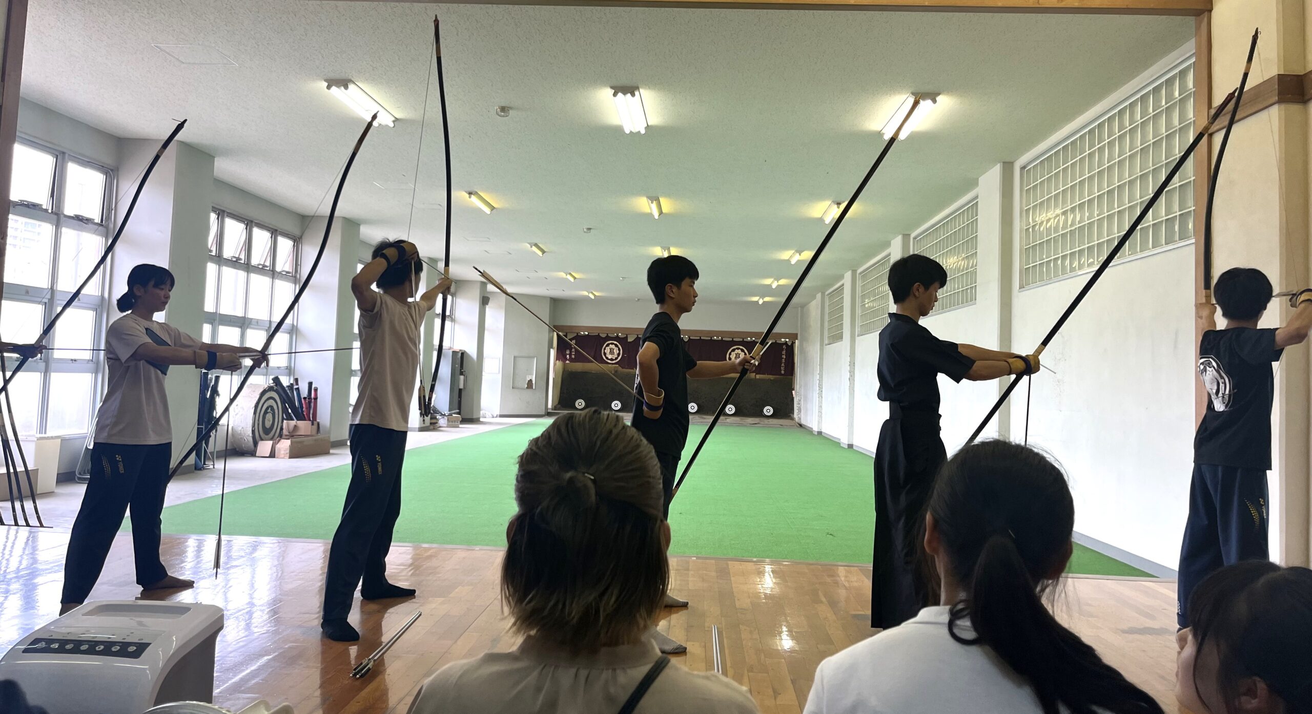 The Americans were able to participate in a Yokohama Hiranuma High School archery class.