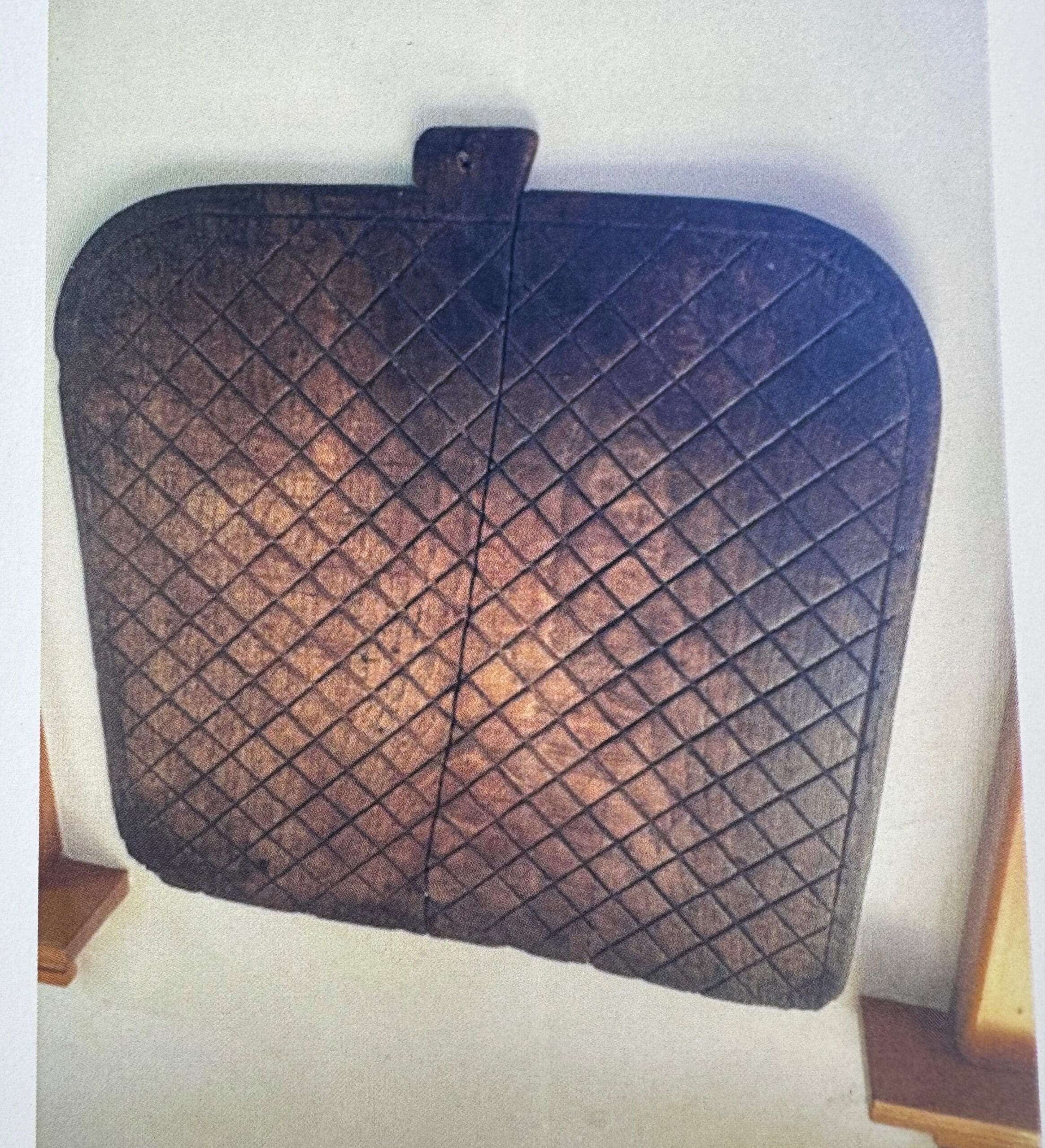 I think this is an old bread cutting board from Europe probably France or Germany. The reason I believe that it was used exclusively for bread is because of the diagonal grooves on the surface, which are there to catch the breadcrumbs. There were different cutting boards for slicing meats and cheeses.