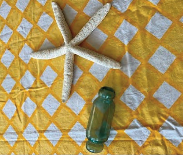 If you guessed something from the ocean, you would be correct. The green object is a Japanese glass fishing-net float.