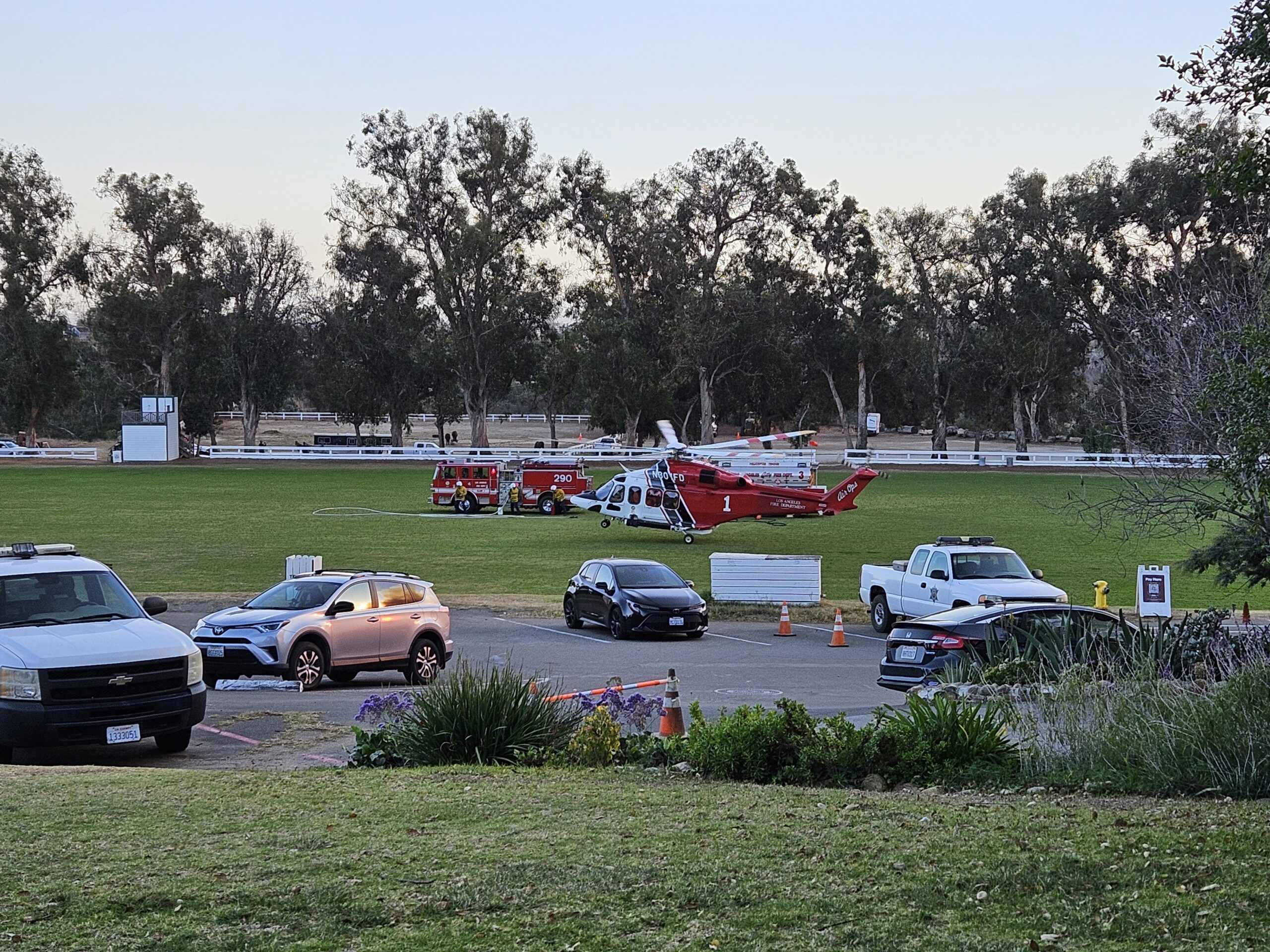 A VillaWoods resident (adjacent to Will Rogers State Park) told CTN that in the afternoon there were eight fire trucks and a water truck by Will Rogers Polo Fields. “I watched them leave at 3 p.m.” He said that it was also about the time that helicopters stopped landing on the polo field. When he asked why firetrucks were leaving, he was told “they had been called out.”