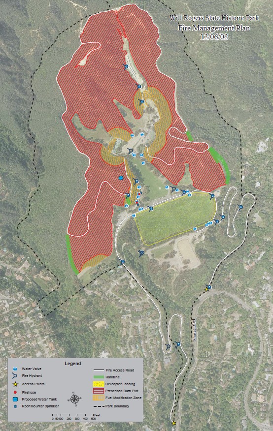 “Irrigation and sprinklers on the hillside behind the Ranch House were also activated several hours in advance. State Parks staff observed no noticeable loss of water pressure at any time,” Biswas said. “By the time the park was completely evacuated at approximately 5:15 p.m., the buildings and surrounding grounds had been thoroughly soaked, and all systems were functioning. In fact, several sprinklers remained operational and continued running for days after the fire.” (The park receives its water from Los Angeles Department of Water and Power.)