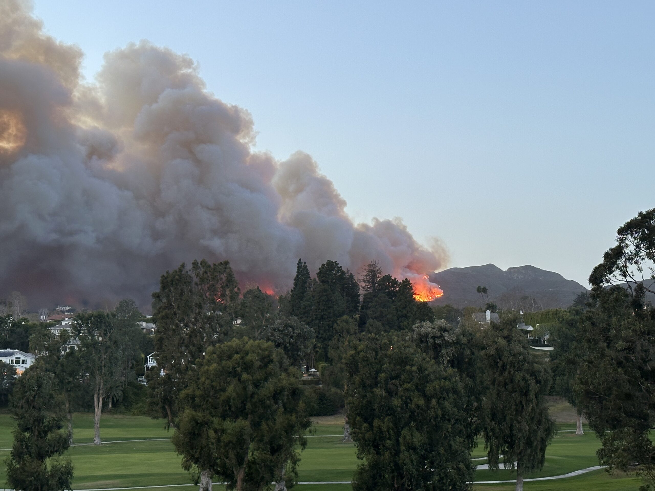 A Villa Woods resident watched the flames at the Will Rogers State Historical Park from near the Riviera Golf course.