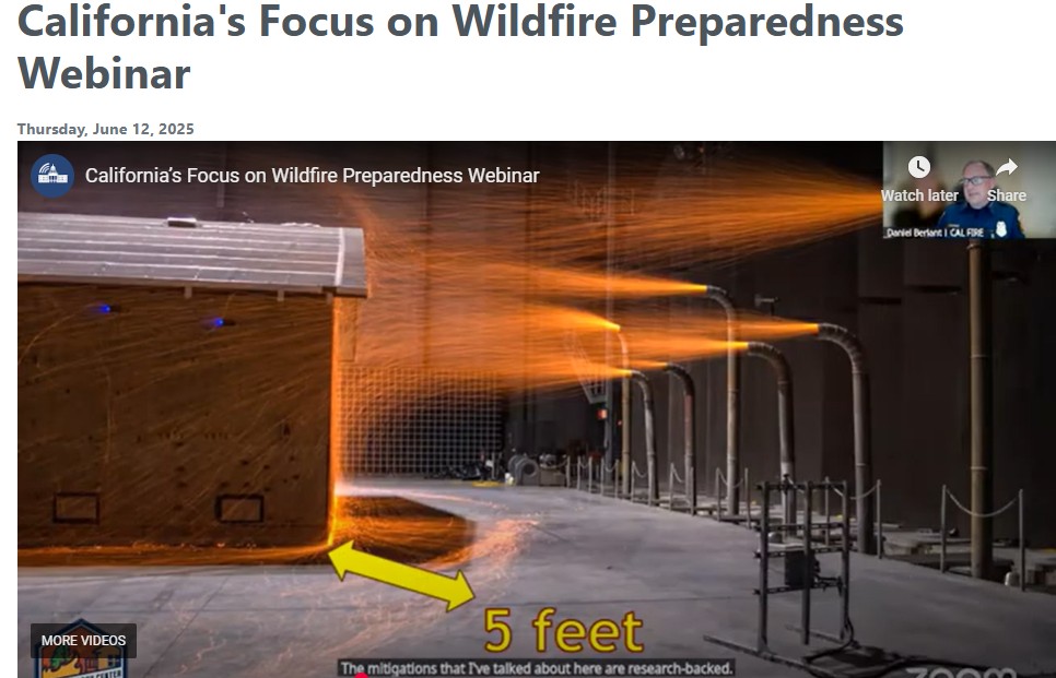 A webinar “California’s Focus on Wildlife Preparedness,” was hosted by Assemblymember Jacqui Irwin on June 12. California State Fire Marshall Daniel Berlant focused on Zone Zero. (click here.)