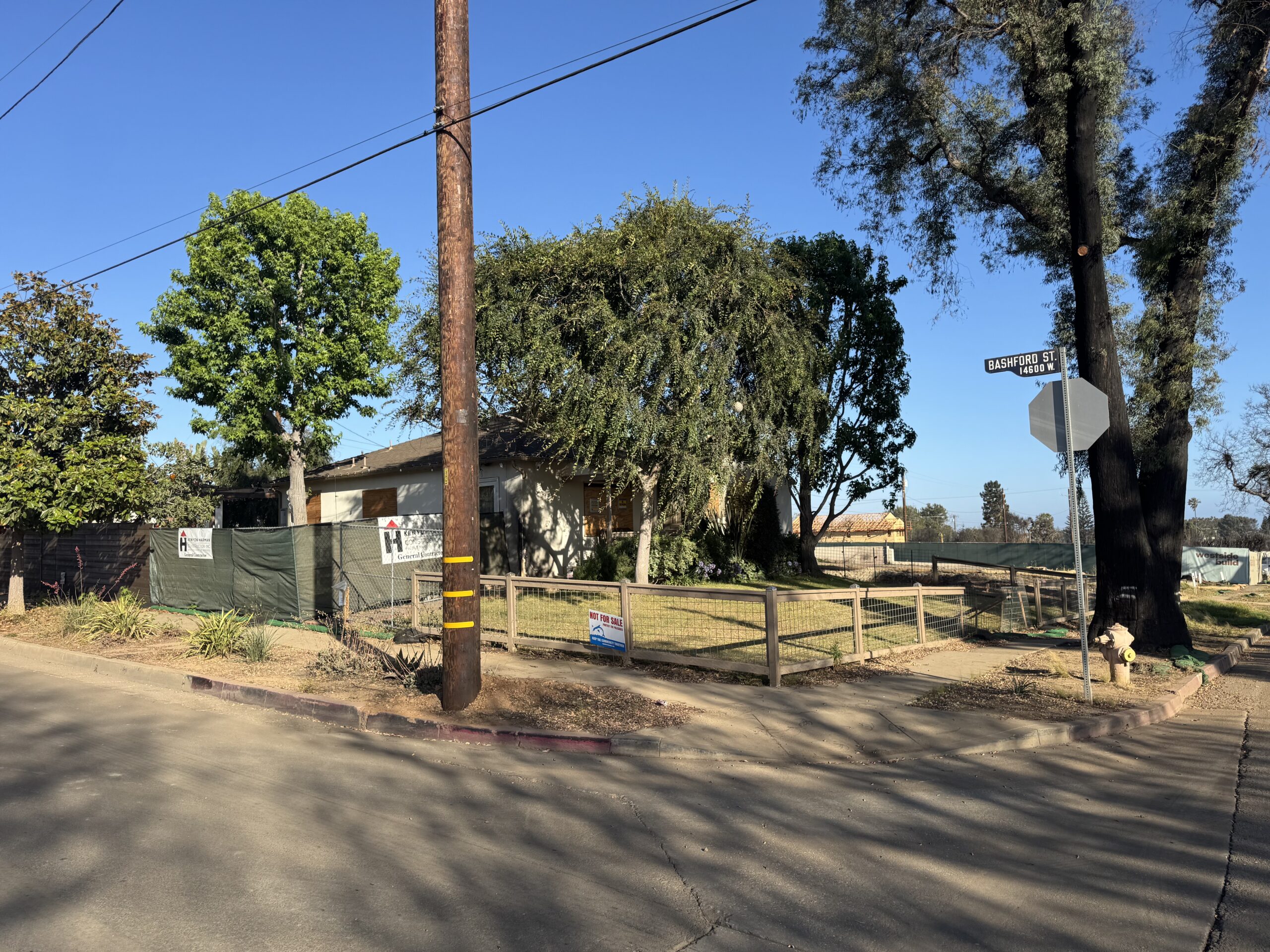 This sole home in the Alphatbet Street, was ssurrounded by grass, tree and shrubbery but did not burn.